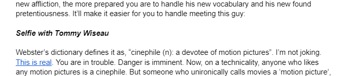 The second bit of context is that The Room is infamous. Since its release in 2003, people have lauded it as one of the worst films ever made. And listing why it’s regarded as such feels disingenuous to the purpose of writing about it now. Instead, if you’ve never heard of The Room or why it’s bad, I present to you this clip to form your own initial opinions.